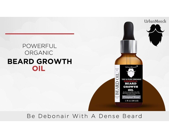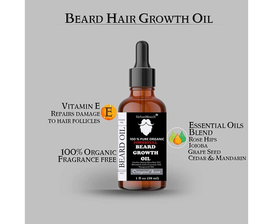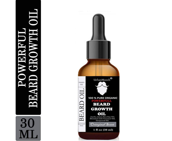 Urban Mooch Beard Growth Oil - 30 ml | faster growth and thicker looking beard | Natural Actives Only | No Harmful Chemicals | Beard Oil for Patchy and Uneven Beard | Non Sticky