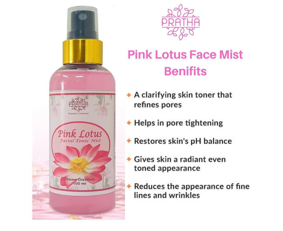 Pratha Facial Tonic Mist | Pure Distilled Pink lotus | Natural Toner | Refreshing face | Goodness of lotus | Nutrients Rich facial mist | Feel Fresh Face | Pack of 2