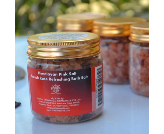 Pratha Himalayan Pink Salt | French Rose Refreshing bath salt | Minerals Rich Himalayan Pink Bath Salt Crystal - For Body Spa, Relaxation and Pain Relief | 225 gm