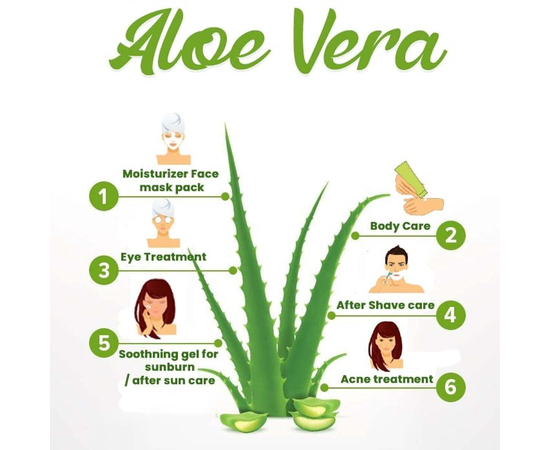 - For skin – Helps soothe sunburn, helps to moisturize the skin, Boosts healing of wounds, Fights skin aging, Reduces infection and acne ,Lightens blemishes on the face.