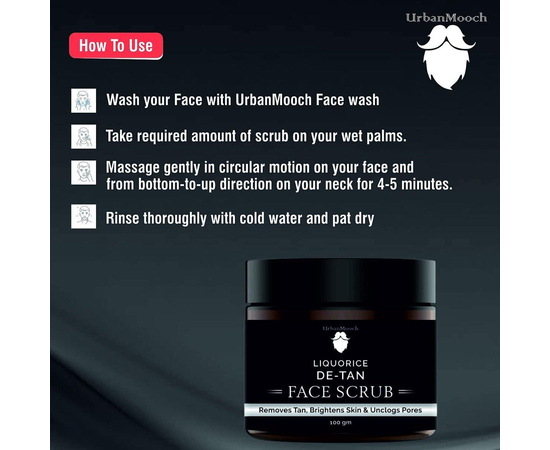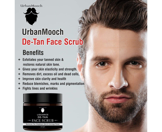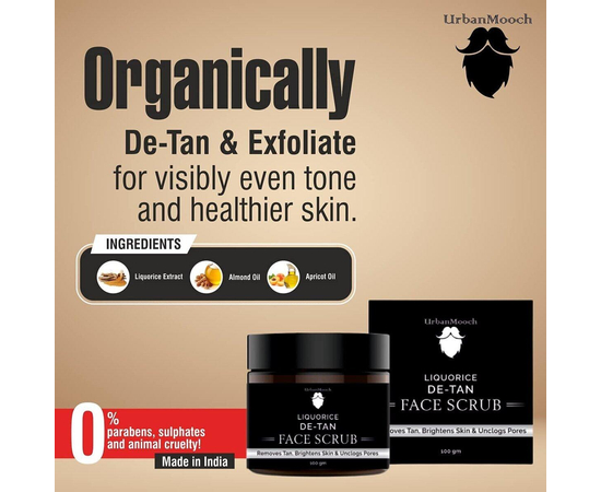 Urban Mooch De-Tan Face Scrub, Tan Removal Body Scrub for Healthy & Glowing Skin, 100 gm | Rich in almond Oil | natural Oil Extract Scrub