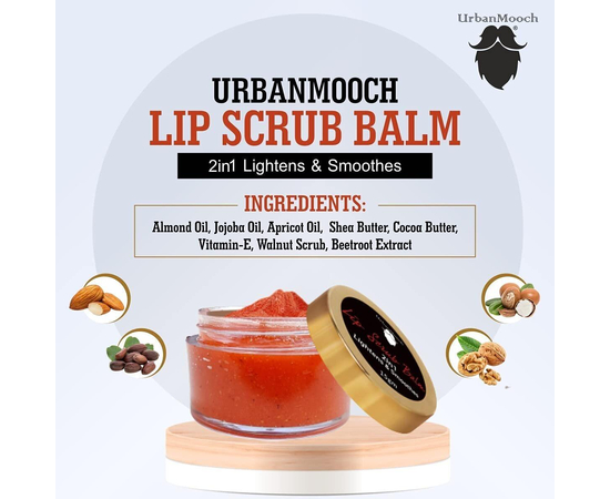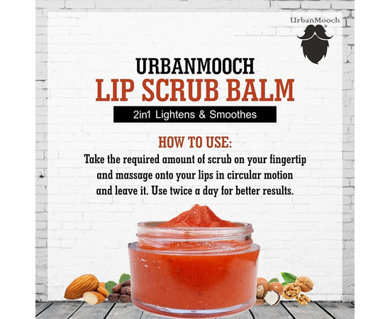 Urban Mooch Lip Scrub Balm Lightening and Brightening Dark Lips | For Dry Lips / Smoker / Chapped Lips, 15 g | Rich in almond Oil | Walnut Extract Scrub