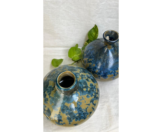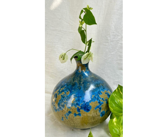 Beautiful handmade ceramics and home décor that can add a special touch to any room. An outstanding touch to your décor, place it anywhere living or bedroom. The beautiful vase that makes corners, the center of attraction, will leave your guests fascinated. A Decorative. Pottery used for Wall and Table Decoration is hand painted and designed by skilled artisans for years. This beautiful wall décor plate will enhance & give a vibrant traditional look to your home. Stoneware clay is used in making of crystalline vases. It is glazed and High-fired and goes through multiple processes. It is fired on 1220 degree Celsius that gives durability and strengthens its structure. Beautiful and stylish, fine material, smooth texture, and artistic atmosphere enhance the look of the product This product is hand-crafted and may have slight irregularities that are a natural outcome of human involvement in the process.