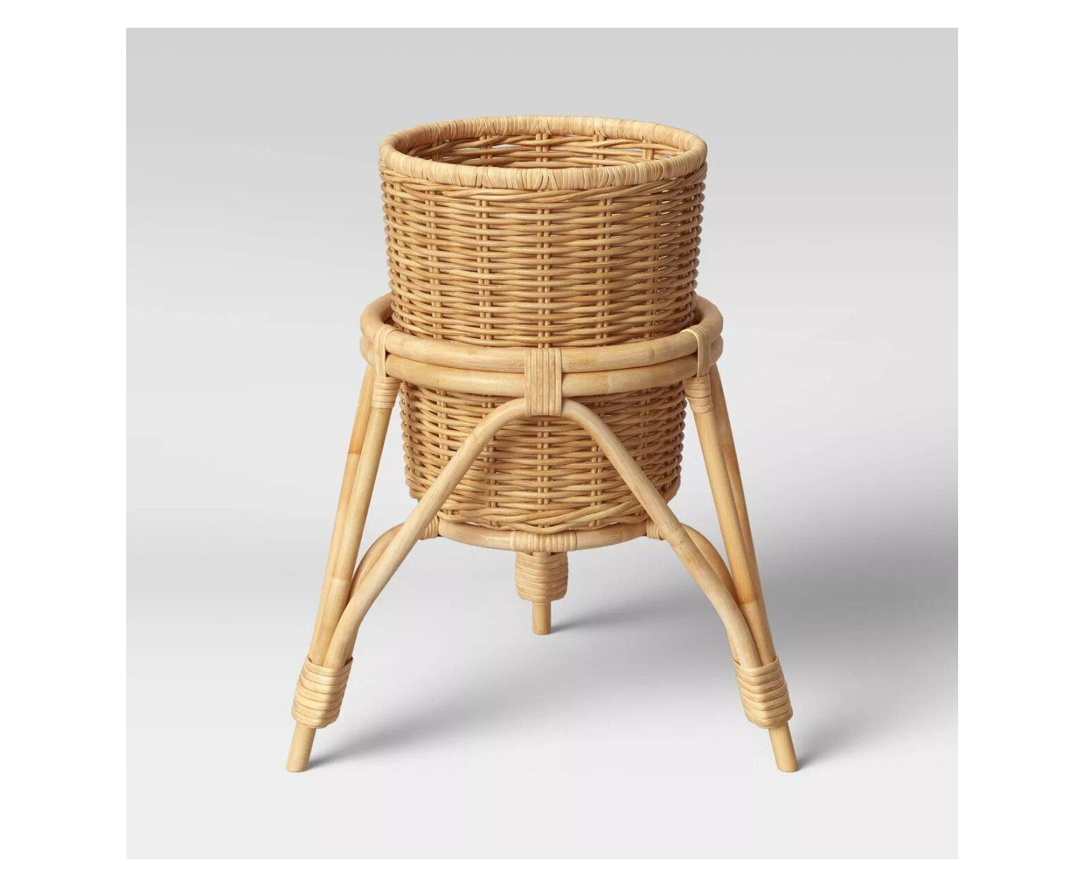 • Rattan Woven Bamboo Strip Planter Basket Handmade Home Décor Item