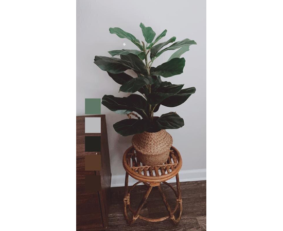 This little stool will look amazing in your bohemian home! Use it as an ottoman, plant stand or a little side table.This listing is for the wicker stool only, it does not include the plants, planters, brass planter, or rug.