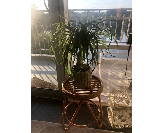 Handmade Wooden AIKO RATTAN STOOL,Rattan Flower Stand, Wooden Basket Flower Stand, Rattan Side Table Boho Style Bamboo Plant Stand, Flower Hock Wickerer