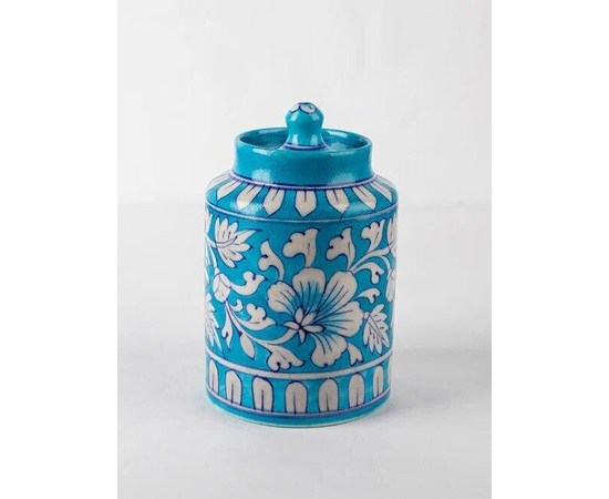 Intricate designBringing you tradition’s finest, this flower jar is intricately painted with swift and precise strokes, reflecting a sophisticated and elegant grandeur in your living spaces. Blue Pottery, locally known as kimchi, can be wielded by hand. Its designs reflect a series of geometric patterns & intricate floral designs. | Material that stands the test of timeHandmade to perfection, this vase is painstakingly made from ground feldspar mixed with gum or starch, making it more durable. The designs complement and accentuate your home with their shiny finish and everlasting luster. | Authentic handmade potteryGift your loved ones a reliable piece of tradition made by skilled artisans of Jaipur with an artisan card, a symbol of authenticity for pure handmade products. | Adorn Your Home DecorThis ceramic vase has designs that strike a balance between the traditional aspect and modern design. It blends well with any home design or aesthetic and also looks great anywhere on a counter or a tabletop. It is also easy to maintain, simply wipe it with a damp cloth. |