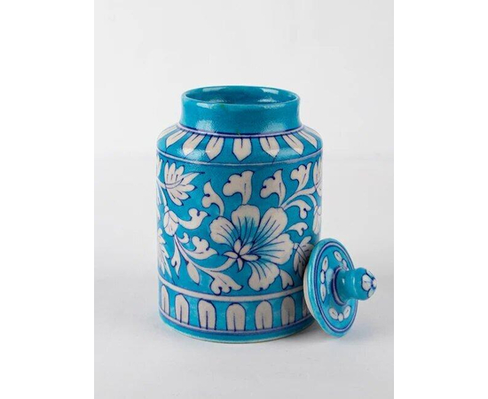 - Handcrafted Blue Pottery Decorative Jars with traditional motifs.