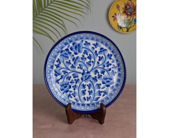 - Handcrafted Blue Pottery Decorative Plate with traditional motifs.