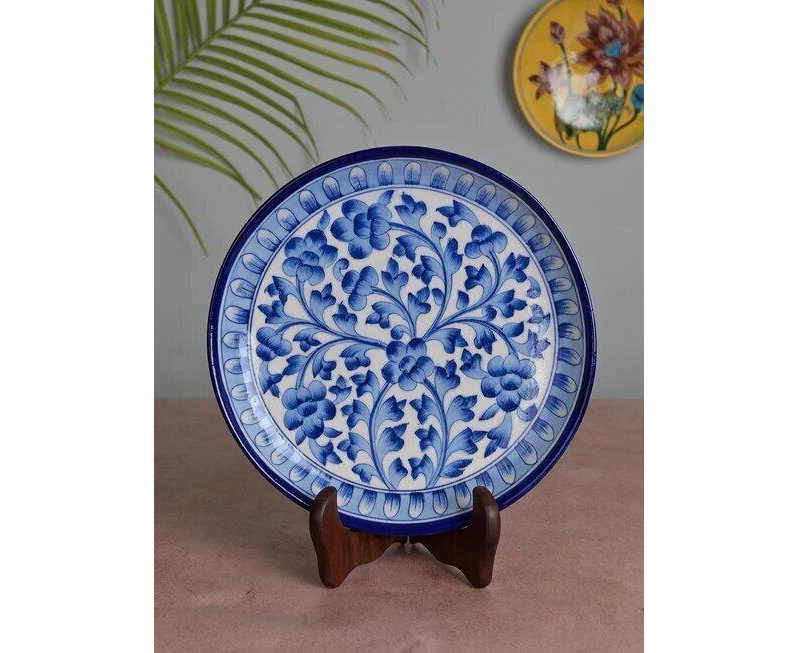 - Handcrafted Blue Pottery Decorative Plate with traditional motifs.