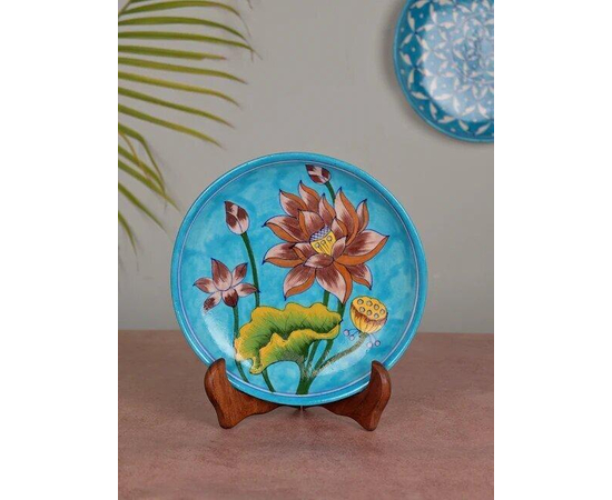 - Handcrafted Blue Pottery Decorative Plate with traditional motifs.