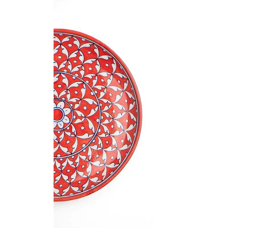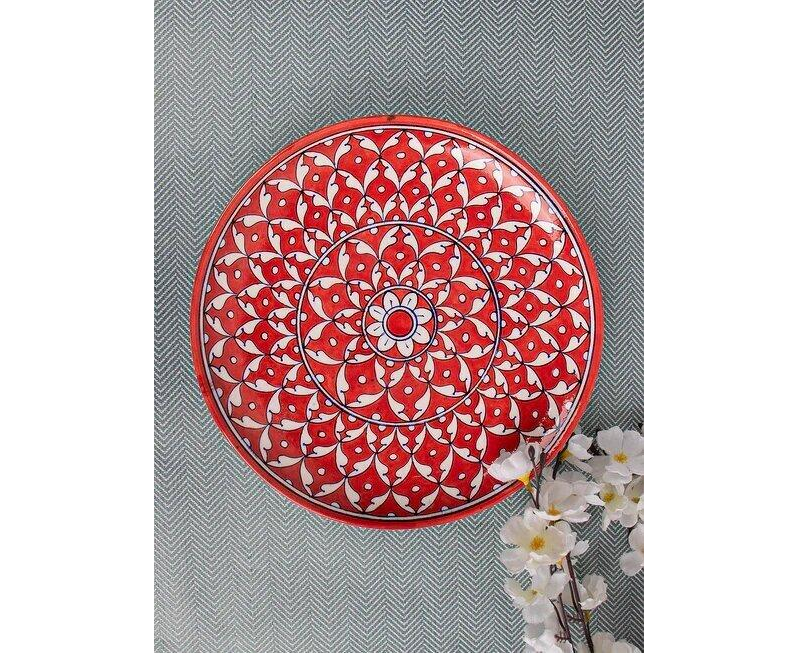 BLUE POTTERY PLATE RUST COLOR GEOMETRIC DESIGN | Home decoration | Exclusive Blue Pottery Ceramic Decorative Plate |