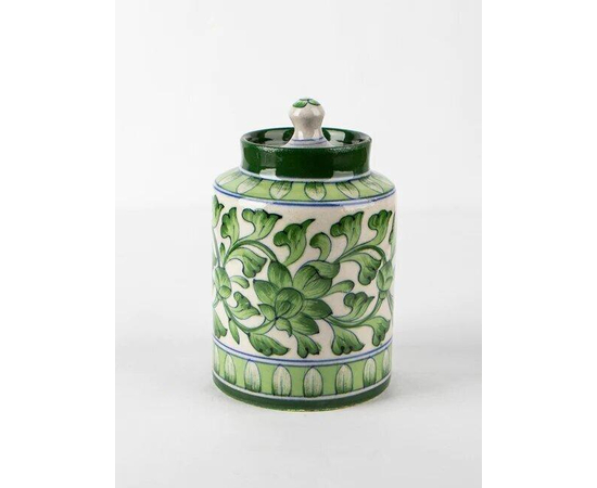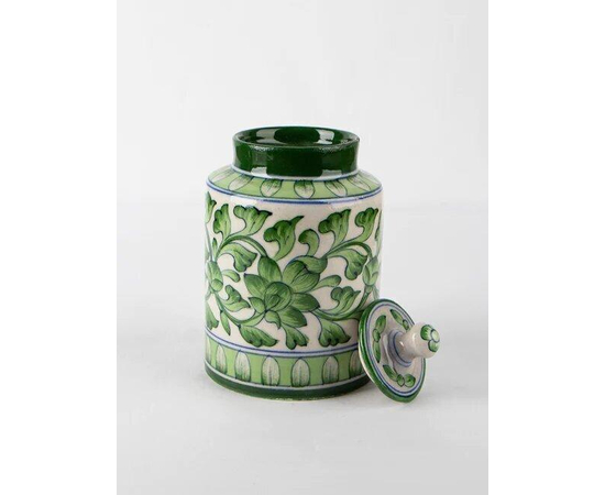 GREEN & WHITE JAR WITH FLORAL MOTIFS | Ceramic Home decoration | Handcrafted pottery | Multi Colored Jar |