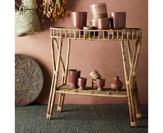 It's the little touches that really set off a room style, which is where this perfectly sized floor-standing bamboo shelf unit, with a practical deep inset top and lower shelf, used in a hallway instead of a traditional console, or a bedroom or living space to subtly enhance the bohemian look.