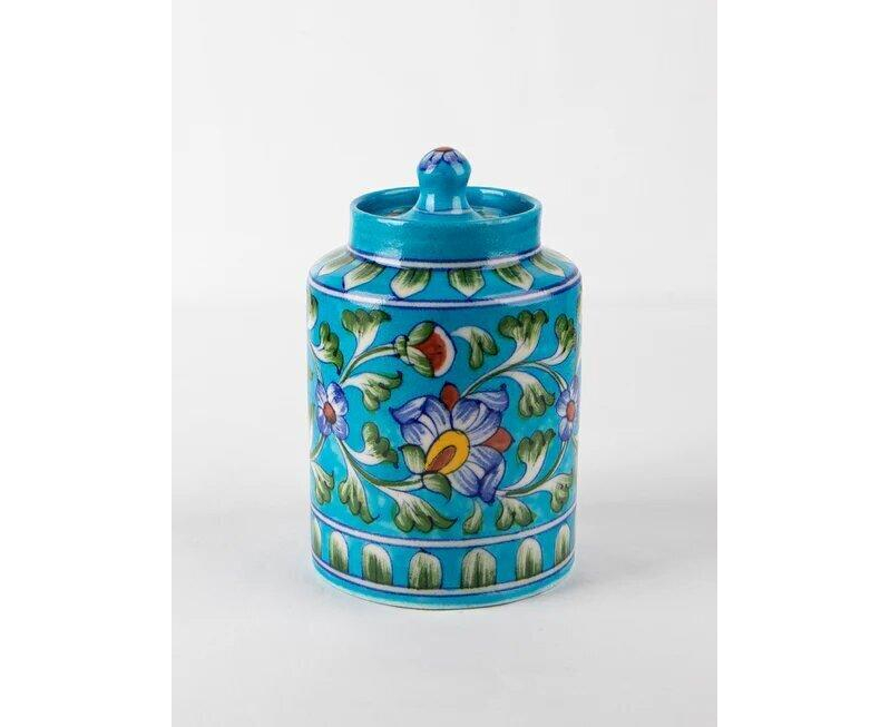 TURQUOISE JAR WITH FLORAL MOTIFS | Ceramic Home decoration | Handcrafted pottery | Multi Colored Jar | Kitchen Decor | Traditional Pottery |