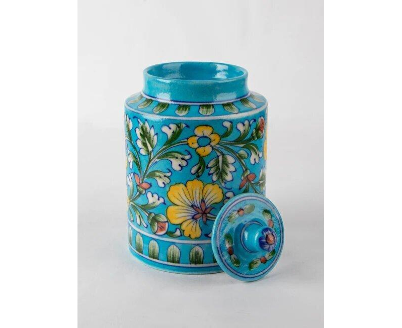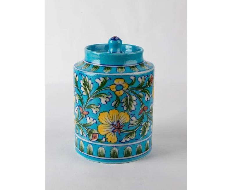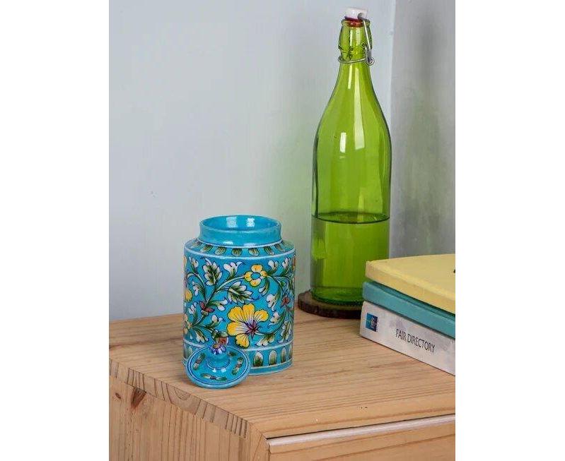TURQUOISE JAR WITH FLORAL MOTIFS | Ceramic Home decoration | Handcrafted pottery | Multi Colored Jar | Kitchen Decor | Traditional Pottery |