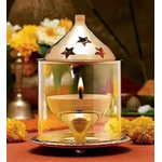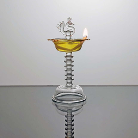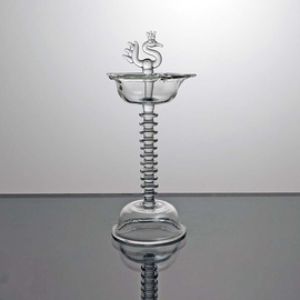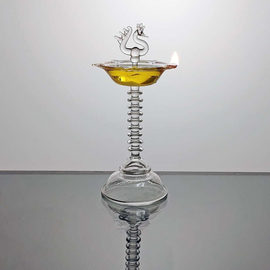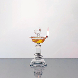 Borosilicate Clear Glass Diya / Borosilicate Mirror Top Akhand Diya/ Akhand Oil Lamp 1 Piece (upto 8 Hrs)