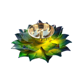 Brass Lotus Shape Kamal Patti Akhand Diya for Puja and Home Decor/ Green Color Lotus Shape oil Lamp