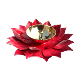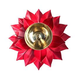 Beautiful Lotus Shape Kamal Patti Akhand Diya for Puja and Home Decor | Red Color Lotus Shape Diya | Peetal Diya | Brass Oil Lamp