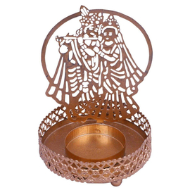 Beautiful Hande Metal Radha Krishna Shadow Tealight Candle Holder/Shadow Metal Tea Light Holder, Brass finish Puja Diwali Candle Holder