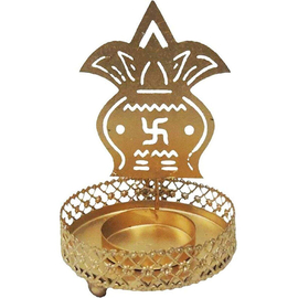 A Swastik Metal Tea Light Holder, Brass finish Puja Diwali Candle Holder