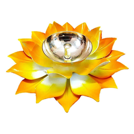 Handmade Iron and Brass Kamal Patta, orange color Akhand diya, Lotus Shape Decorative Akhand Deepak for Pooja, Brass Diya Lamp (6 inch)