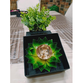 Handmade Iron and Brass Kamal Patta, green color Akhand diya, Lotus Shape Decorative Akhand Deepak for Pooja, Brass Diya Lamp (6 inch)
