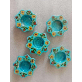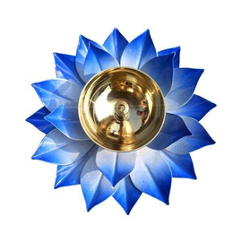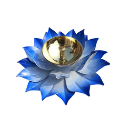 Blue Brass Lotus Diya for Puja Kamal Patti Flower Shaped Brass Diya Oil Lamp for Puja Room Aarti Temple Home Decoration & Gift Item
