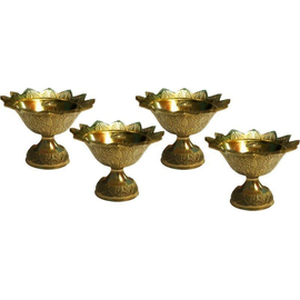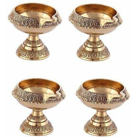 Hand Craved Diya for Diwali in Pure Brass/Diya Lamp Engraved Design Dia (Set of 4) - Peetal diya - golden