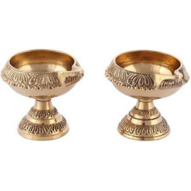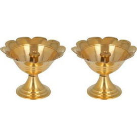 Small Brass Diwali Kuber devdas Plain Deepak Diya Oil Lamp For Puja pack 2/ Diwlai Decor Diya Stand Oil Lamp for Home Mandir