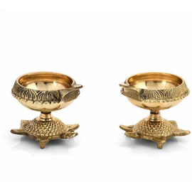 Brass Handmade Engraved Design Kuber Diya with Turtle Base, Diya for Pooja Room set of 2