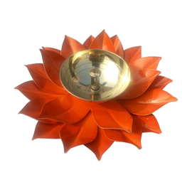 Orange Brass Lotus Diya for Puja Kamal Patti Flower Shaped Brass Diya Oil Lamp for Puja Room Aarti Temple Home Decoration & Gift Item