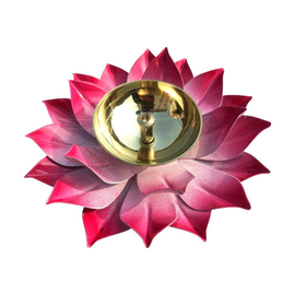 Handmade Iron and Brass Kamal Patta, pink color Akhand diya, Lotus Shape Decorative Akhand Deepak for Pooja, Brass Diya Lamp (6 inch)