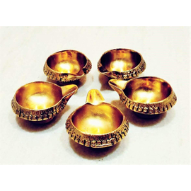 Indian Puja Kuber Deepak Set of 5 Pcs/ Engraved Design Oil Lamp/ Golden Deepawali Diya Lamp Candle Holder For Pooja, Diwali Decoration & Celebration