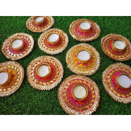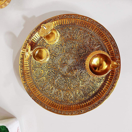 Metal Gold Plated Pooja Thali With Diya & Kumkum box, For Home and Office Temple , Pooja Room/ Pooja Thali Set