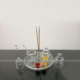 Borosilicate Clear Glass Diya / Borosilicate Mirror Top Akhand Diya/ Akhand Oil Lamp 1 Piece (upto 12 Hrs)