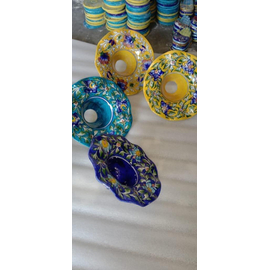 Antique Hand Painted Royal Blue Pottery Yellow Color Indian Traditional Floral Design Hanging Lamp, Pendant Light, Hanging Light, Hanging Ceiling Lampshade.
