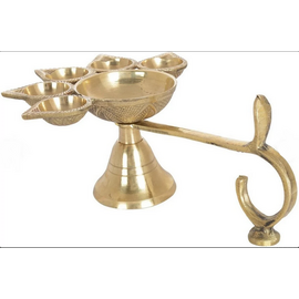 Handmade Decorative Brass panchaarti Diya Stand, Royal Brass Panch Aarti Diya, Hindu Religion Puja Vessel For Aarti Pooja And Havan, Pack of 1