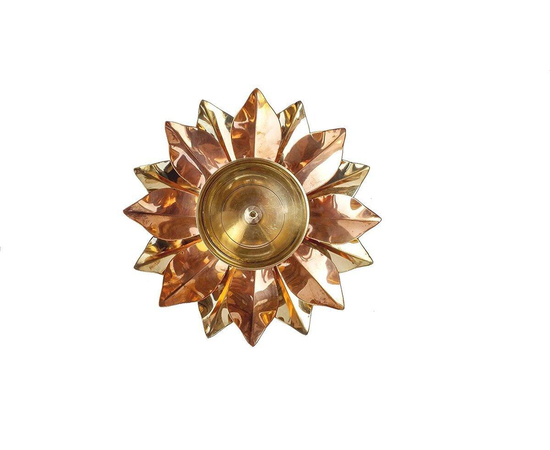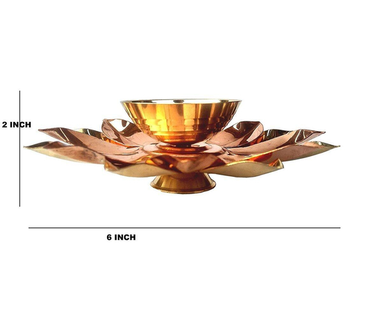 Handmade Brass Copper Lotus Flower Petals Kamal Shape Metal Akhand Diya | Pooja Dia Home Temple Decoration Oil Lamp Gift Items | Kamalpatta Akhand Diya - 6 Inch