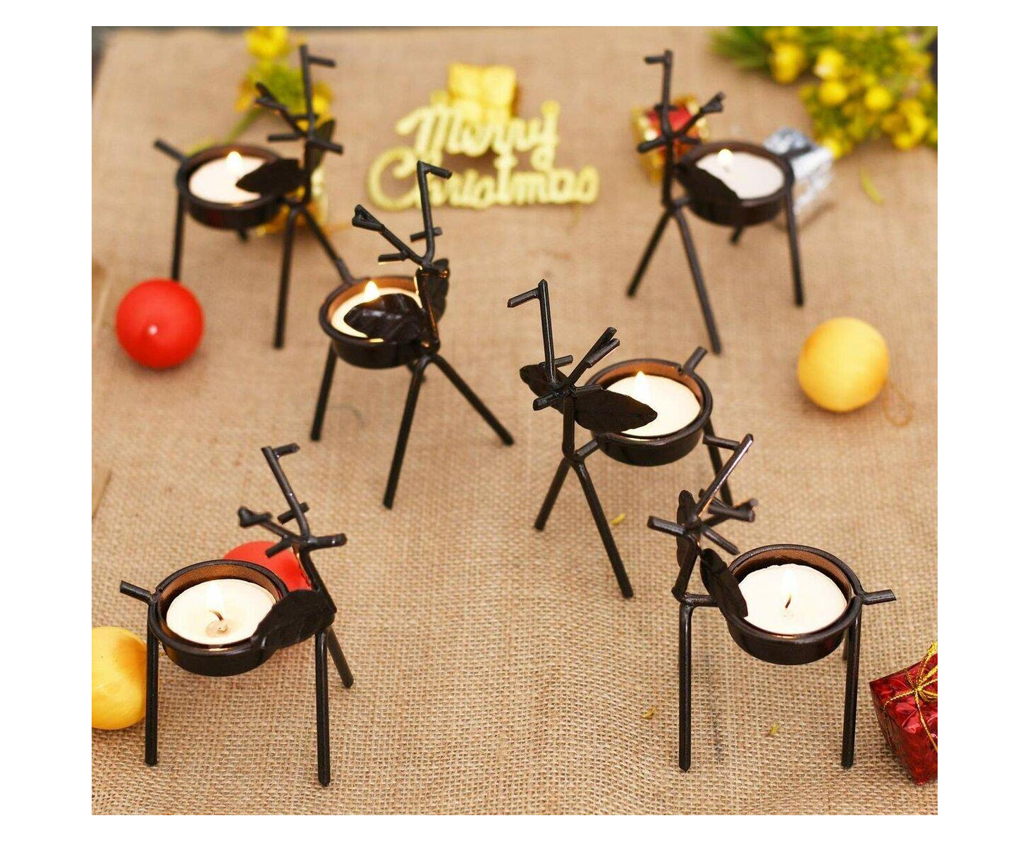Heaven Decor Cute Christmas Reindeer Tealight Holder - 2 pc (Black) Reindeer Shaped tealight Holder