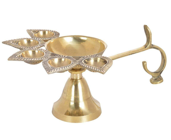 Beautiful Decorative Brass panchaarti Diya Stand, Royal Brass Panch Aarti Diya, Pack of 1, Brass Panch Aarti Deepak, Lamp, Oil Lamp, Panch aarti, Hand Crafted Peetal Diya