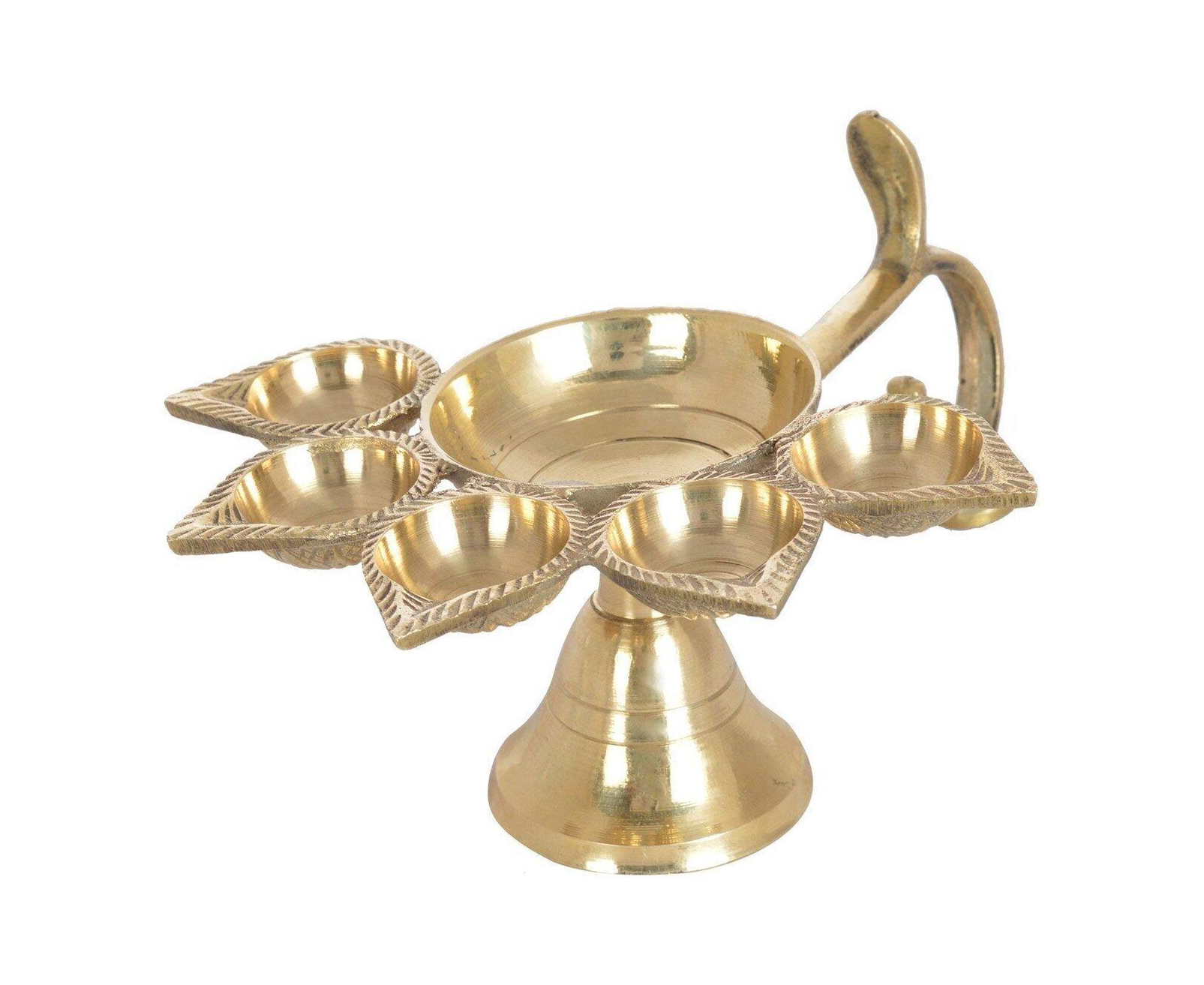 Beautiful Decorative Brass panchaarti Diya Stand, Royal Brass Panch Aarti Diya, Pack of 1, Brass Panch Aarti Deepak, Lamp, Oil Lamp, Panch aarti, Hand Crafted Peetal Diya