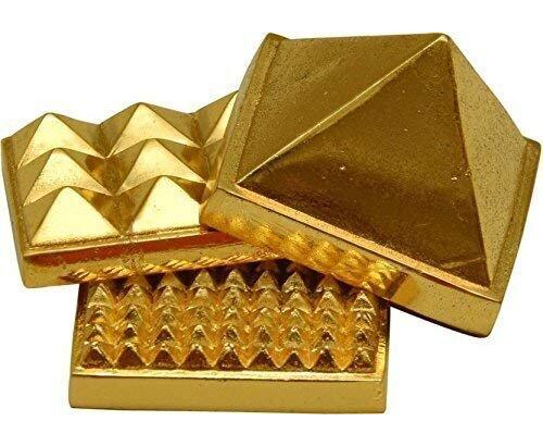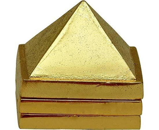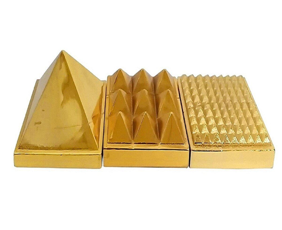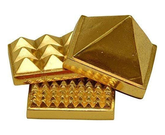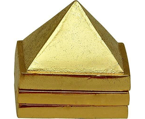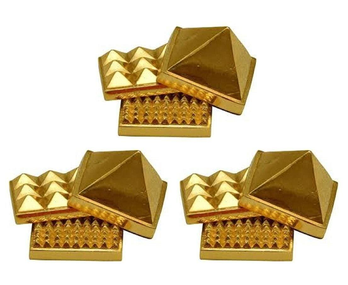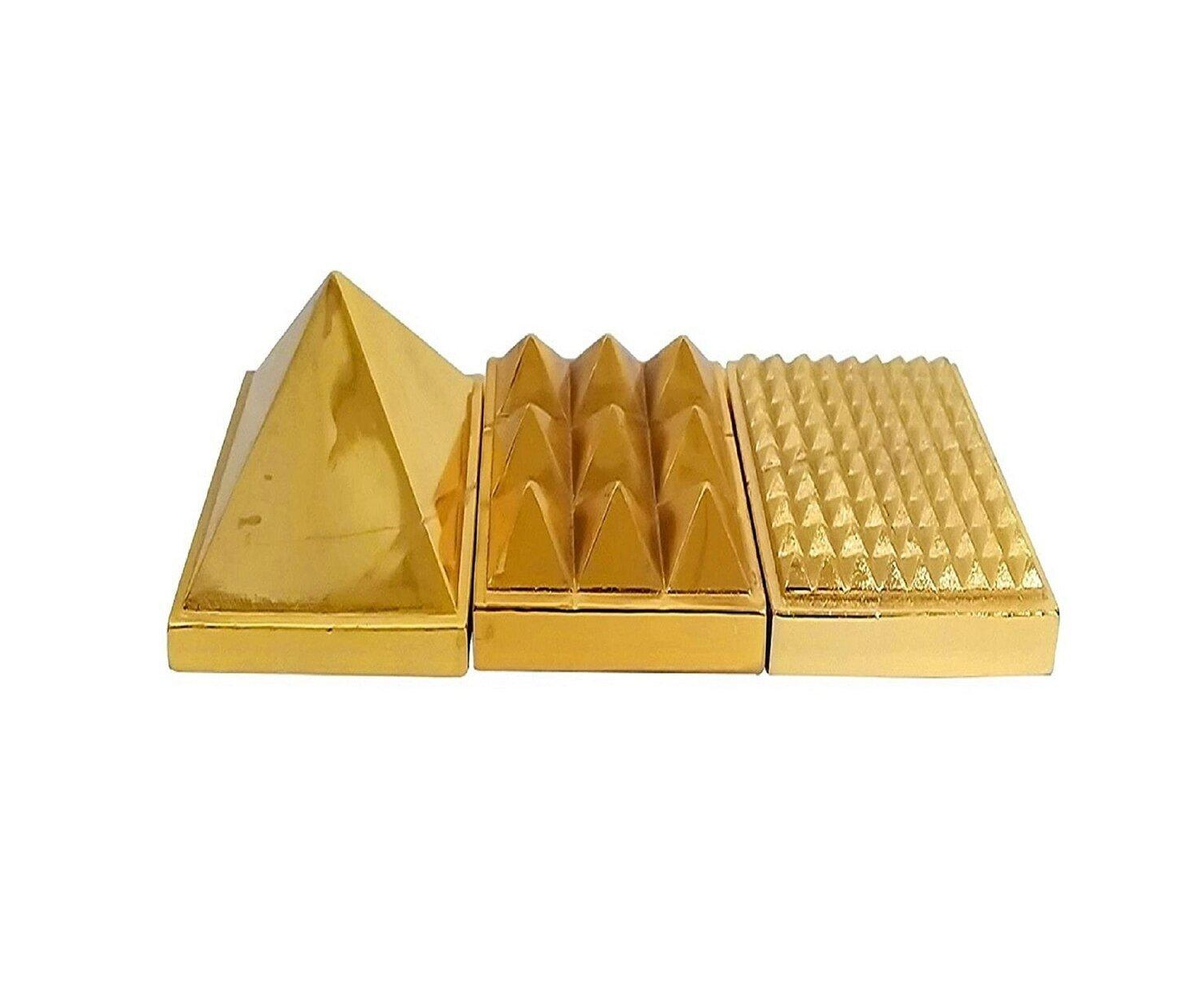 Gold Plated Zinc Vastu Pyramid Yantra Showpiece | Ashtadhatu Vastu Pyramid for Positive Energy, Good Luck & Prosperity - Pack of 3