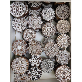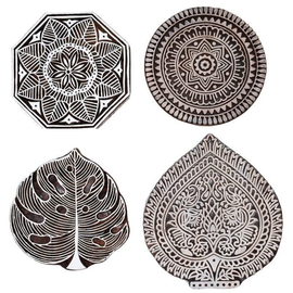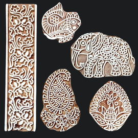 Hand blocking is an ancient method of textile printing, renowned for it's exotic designs in vibrant colours on fabric. In this method, wooden blocks carved with intricate details are used to manually print beautiful designs that usually cover the entire length of a fabric.