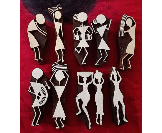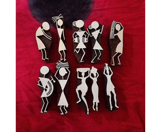 Handmade Wooden Hand Carved Printing warli Block Stamp for Mehndi/Textile Printing/Pottery Craft/Saree Border/Canvas Painting - Set of 10 Pieces