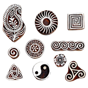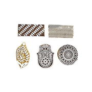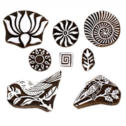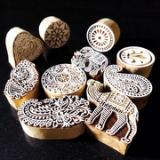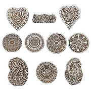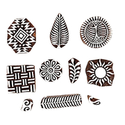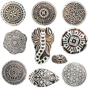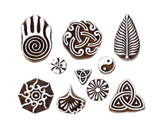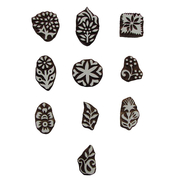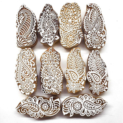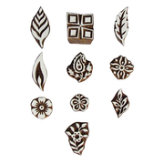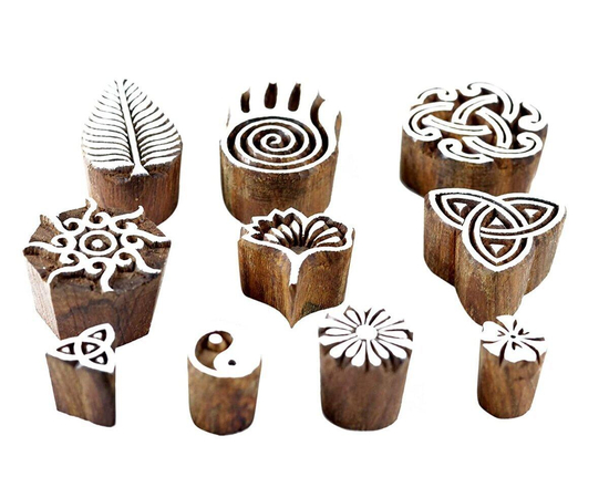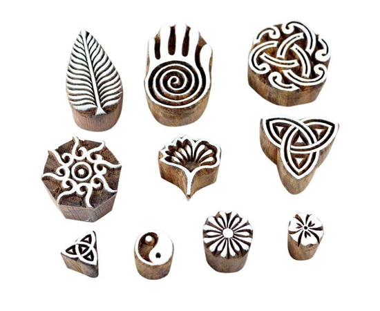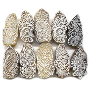 Handmade Textile Printing Wooden Stamps - Set of 10 Block Print Stamps for Crafting, Kids' Art Projects, to Decorate Cards Henna Tattoo, Fabric, Textile, Pottery Craft, Saree Border