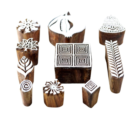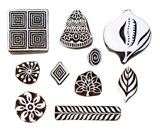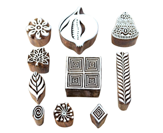Handmade Wooden Block Stamps, Wooden Blocks for Block Printing - Stamp Sets for Crafting, Kids' Art Projects, Cards Saree Border Henna Fabric Textile Paper Clay Pottery (Set of 10 Pcs)