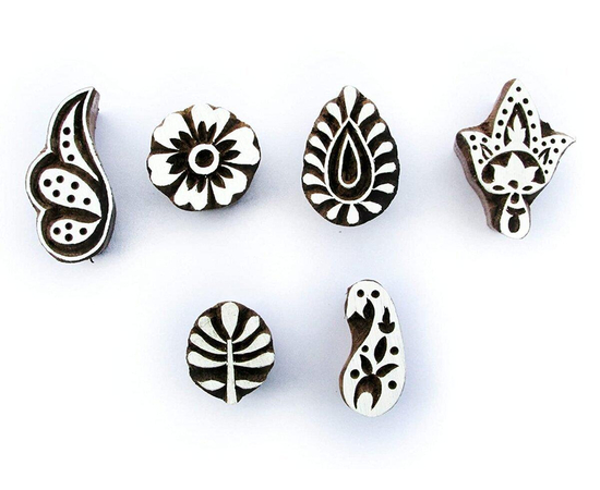 Wooden Printing Stamp Block Hand-Carved, Pottery Crafts and Textile Stamp Sets for Crafting, Kids' Art Projects, Cards Saree Border Henna Fabric Textile Paper (1.5 x 1.5-inch, Set of 6 pcs)