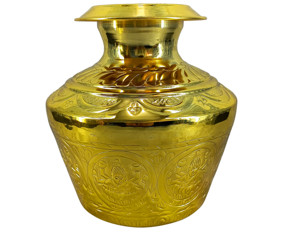 Handmade Brass Kalash/Large Traditional Drinkware Water Pitcher Temple Decorations Hindu Gifts, Best for Pooja Room, Mandir, Temple, Weddings, Marriage, Festival