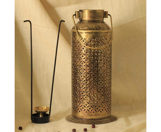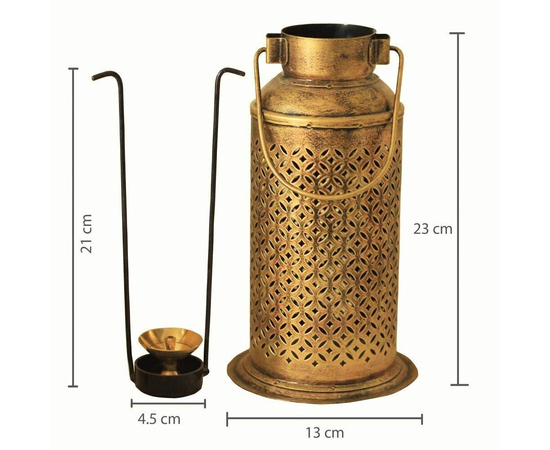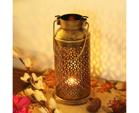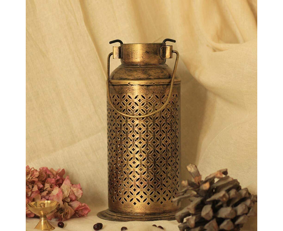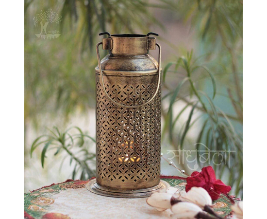- Inspired with Vintage Milk Can, an antique golden polished iron craft handled Lantern with brass Diya. It can also use with a t-light candle.